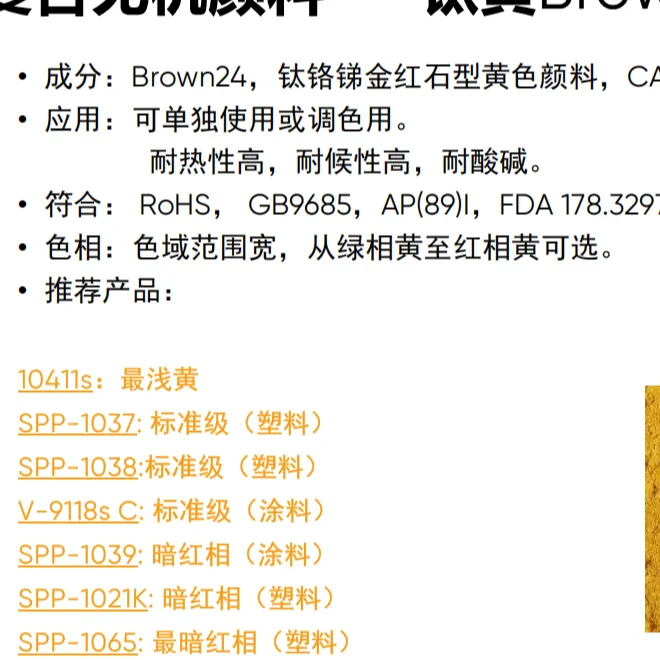钛黄10411s、V-9118S、SPP-1021、1037、1038、1039、1065、1041S 余姚市旭辰贸易有限公司